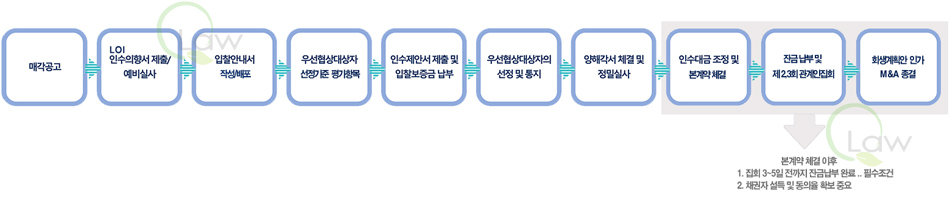 다만, 회생계획 인가 전의 M&A에서는 계속기업가치 산정에 있어 미확정 상태의 M&A를 어느 정도로 고려할 수 있는가의 문제와 구체적인 M&A를 내용으로 하는 회생계획안이 가결되지 않았을 경우의 폐지 가능성 등을 염두에 두어야 합니다.