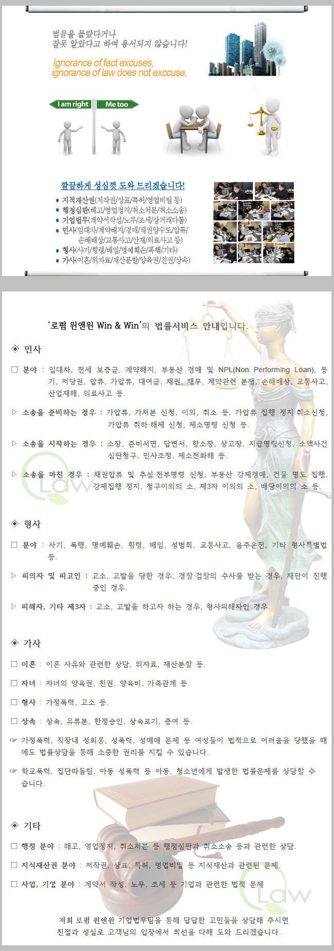 회사명 : 로펌 윈앤윈 | 대표변호사 : 채혜선 | 주소 : (06634) 서울 서초구 서초중앙로22길 17, 메가스터디건물 2층(서초동) | 광고책임 : 채혜선 변호사
